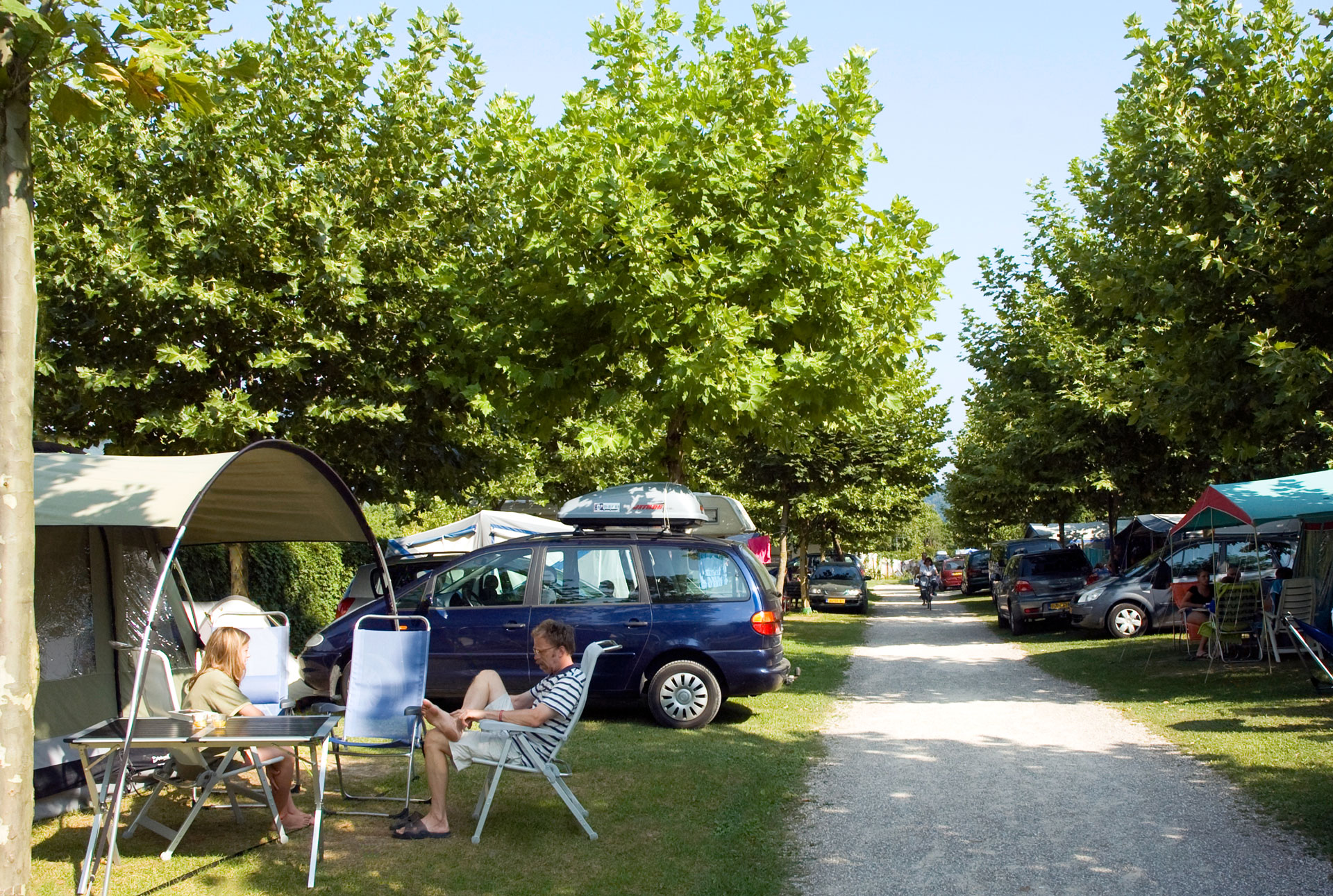 È possibile campeggiare con la tenda all’interno dell’area boschiva del Camping predisposta a tale uso.